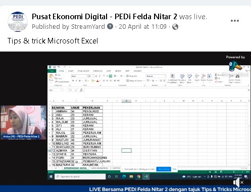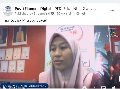 • Program diadakan melalui LIVE di Page PEDI Felda Nitar 2, Program ini melibatkan pengikut – pengikut dan penonton Facebook Page Pusat Ekonomi Digital Felda Nitar 2