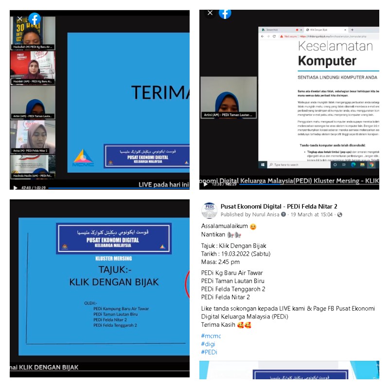 • Program diadakan melalui LIVE di Page PEDI Felda Nitar 2, PEDi Felda Tenggaroh 2,PEDi Kg. Baru Air Tawar & PEDi Taman Lautan Biru.
