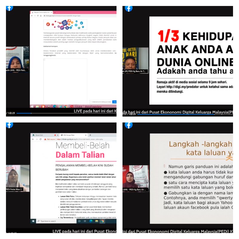 Pengisian ini merupakan perkongsian daripada PEDI Felda Nitar 2, PEDi Felda Tenggaroh 2,PEDi Kg. Baru Air Tawar & PEDi Taman Lautan Biru. Siaran langsung ini diadakan di Pusat Internet masing-masing. Diharap, siaran langsung ini dapat berkongsi ilmu kepada pengikut – pengikut Page Pusat Ekonomi Digital mengenai tajuk seperti di atas.