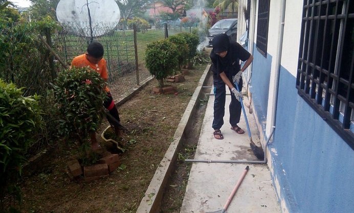 Aktiviti Gotong-Royong di Kawasan Bangunan KEMAS Felda Nitar 2 | 24 Januari 2015